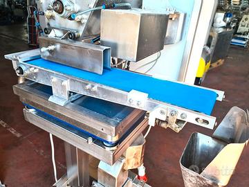 dosatore aromi con bilancia usato, si tratta di un dosatore di polveri di marca Roma Giuseppe S.r.l mod. dosatore polveri del 2014 funzionnate a 220v utilizzato in ambienti come: industrie alimentari, farmaceutiche, chimiche, etc. per la macinazione e il dosaggio di prodotti come: cereali, spezie, farine, polveri, etc. completo di vasca mixer,bilancia di pesatura, nastrino trasportatore prodotti e tramoggia con attacco penumatico per messa in circuito produttivo. questo in particolare era usato come dosatore per tamburo di aromatizzazione. dimensioni: 95X96cm h210cm, vasca 36X28cm h40cm, nastro 12X56cm