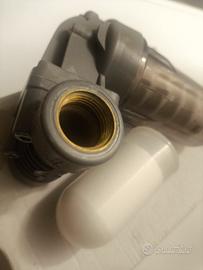 dosatore di polifosfati smontato da impianto mai andato in funzione, è stata rovinata la plastica vicino al raccordo ma non pregiudica il funzionamento. attacco 1/2" con una cartuccia di polifosfati.