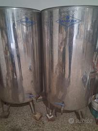 Botti in acciaio inox Sansone, da 500 litri, per olio compresi di piedi per supporto e rubinetto; in ottimo stato, ad Euro 150 l'uno.