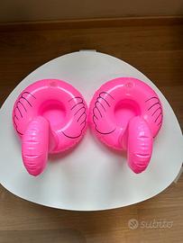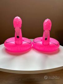 Due Fenicotteri rosa gonfiabili con porta bevande