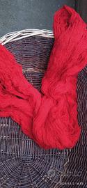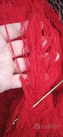 due grandi matasse di filato tipo lanetta di colore rosso con pallini. e.15 al pz insieme e.25 (in più aggiungo delle rimanenze) (zona Sant'Orsola)