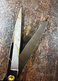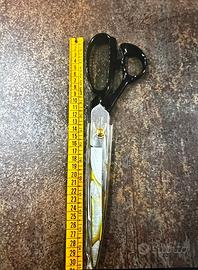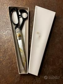 Due paia forbici ideali per chi necessita di tagli lunghi e precisi su materiali consistenti. Perfette per sartoria professionale, tappezzeria o per tagliare diversi strati di tessuto contemporaneamente. Condizione: Nuove, mai usate, il colore giallo che vedete sulle lame è relativo al grasso che viene spalmato sulle lame nuove Si tratta di forbici che erano state acquistate per la mia sartoria chiusa a inizio anno Caratteristiche Principali: • Lunghezza Imponente (XL): Misura circa 31 cm (12 pollici) totali. Lame lunghe e potenti. • Ideali per: Taglio professionale di tessuti pesanti, multistrato, feltro, pelle sottile o materiali da tappezzeria. • Materiale: Acciaio di alta qualità, progettate per mantenere il filo a lungo. • Impugnatura: Manici classici neri (ergonomici) che permettono di tagliare con il massimo della leva. Disponibili 100 pezzi