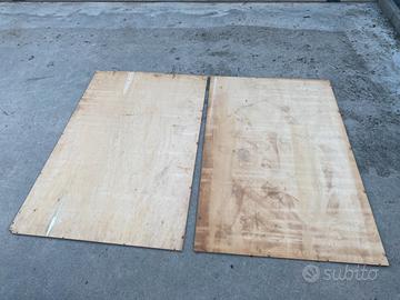Due fogli di compensato che misurano l’uno 158 cm x 101 cm spessore 6 mm.