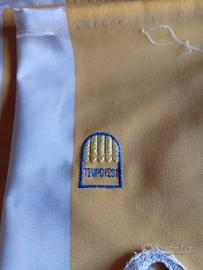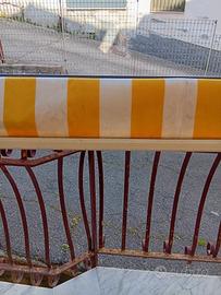 due tende da sole bianche e gialle mis 2,60 il bordo è da cucire,la tenda da lavare cambiare un aggancio per farla scendere