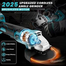 【Tecnologia avanzata del motore senza spazzole】-- Questo smerigliatore angolare senza fili utilizza la più recente tecnologia del 2025 con un potente motore senza spazzole (900 W). Offre tre velocità e raggiunge una velocità a vuoto di fino a 9.000 giri/min, garantendo prestazioni più efficienti e una durata maggiore. Ideale per smerigliare, tagliare, lucidare e rimuovere materiali in officine o a casa.