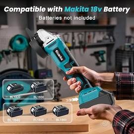 【Alta compatibilità】-- Il nostro smerigliatore angolare portatile è compatibile con le batterie al litio Ma-kita 18V, inclusi i modelli BL1820, BL1830, BL1840, BL1850, BL1860 e molti altri (le batterie non sono incluse nella confezione). Rispetto agli utensili tradizionali con cavo, offre una gestione più comoda ed è più facile da riporre.