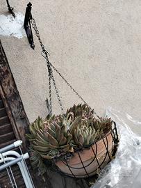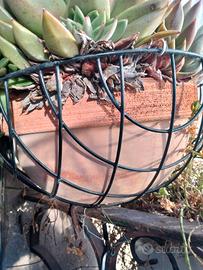 completa di vaso a ciotola in terracotta e cesto in ferro battuto per, volendo, appenderla. diametro totale 40 cm. la pianta ha circa 30/35 anni