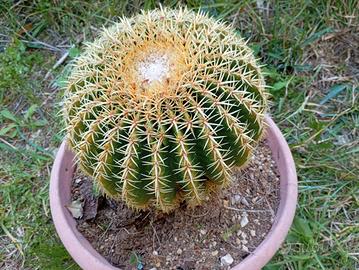 Echinocactus grusonii brevispinus (Cuscino della suocera), pianta succulenta sferica, spine sane di bel colore chiaro. Dimensione: Circonferenza 83 cm Diametro 25 cm circa Altezza 23 cm Disponibile per ritiro a mano o consegna a mano in zona.