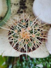 Pianta di Echinocactus grusonii, conosciuta anche come cuscino della suocera. - Forma sferica. - Spine gialle. - Vaso in plastica marrone. Esemplare in foto vaso cm 6.5, spedisco a radice nuda. Non spedisco con Inpost.