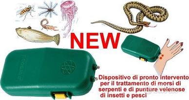 L'apparecchio costituisce un mezzo moderno ed innovativo di pronto intervento, prima delle cure di un medico o di un centro ospedaliero, ed agisce contro morsi velenosi di vipere, punture di insetti (api, vespe, calabroni, ecc.), di aracnidi (scorpioni, ragni ecc.) e di animali marini (tracine, meduse, corallo urticante).