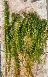 L’Egeria densa, comunemente nota come Elodea, è una pianta acquatica a crescita rapida, molto apprezzata per la sua resistenza e per il suo contributo alla salute generale del laghetto e dell'acquario. Le sue foglie verde brillante, lunghe e sottili, crescono lungo steli robusti, formando cespugli densi che offrono rifugio ai pesci e migliorano l'ossigenazione dell'acqua. L'Egeria densaè particolarmente utile per contrastare la crescita delle alghe, poiché assorbe rapidamente i nutrienti in eccesso dall'acqua.