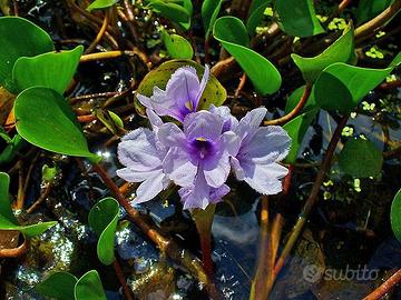 pianta strisciante galleggiante, cresce spontaneamente nei continenti tropicali e subtropicali soprattutto del sud-America. simile all'eichhornia Crassipes, il classico giacinto d'acqua , costituita da fusti che radicano sul fondo dai quali si sviluppano le ramificazioni galleggianti, non resiste al gelo deve essere ricoverata a temperature inferiori ai 10 grad, raggiunge l’altezza di 20 cm sulla superficie dell’acqua, si coltiva in terra fangosa alla profondità di max 20 cm dalla radice, fiori a spiga di colore azzurro-lilla, il periodo della fioritura va da primavera all’autunno; esposizione pieno sole - mezzombra. Pianta consegnata a radice nuda o in vaso a seconda della disponibilità, possibilità di spedizione