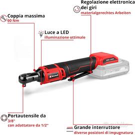 Maneggevolezza – L'avvitatore a cricchetto a batteria ha un design compatto ed è quindi ideale per le applicazioni nel settore automobilistico. Può essere utilizzato anche come cricchetto a mano.