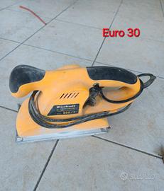 Einhell Bavaria BSS280/1 Levigatrice orbitale (vibrante) con aspirazione polvere integrata Alimentazione elettrica: 230V ~ 50Hz Potenza motore: 280W Dimensione carta abrasiva: 280×115mm (superficie utile ~227×115mm) Oscillazioni massime: fino a 12.000osc/min Peso: circa 2,3kg N.01 levigatrice 30 euro N.02 levigatrici 50 euro