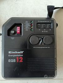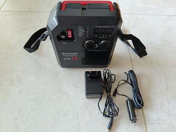 Einhell EGS 12 + HL 12-55 La stazione di alimentazione portatile Einhell EGS 12: ------------------------------------------------------------------ è un utile alleato in caso di emergenza o come fonte di energia alternativa in diversi contesti. Avviare un’auto con batteria scarica (funzione “starter”) 12V 50A Alimentare dispositivi a 12V/10A (tipo presa accendisigari) Caricare piccoli apparecchi elettronici Fornire diverse tensioni (3V, 6V, 9V, 12V) ⚙️ Caratteristiche principali della power station - Batteria interna: 12V / 7Ah (gel) non fornita - Uscita 12V fino a 10A - Funzione avviamento: fino a 50A - Presa tipo accendisigari + uscite multiple - Ricarica da rete 230V 👍 Cosa ci si può fare - Emergenze in auto (batteria scarica) - Campeggio o uso mobile - Alimentare piccoli dispositivi 12V Incluso caricatore, cavi vari ed istruzioni, come visibili in foto. La lampada alogena al quarzo Einhell HL-12-55: ------------------------------------------------------------- è una lampada portatile con piedistallo 12V 55W e cavo allungabile con attacco presa accendisigari. Utilizzabile ad esempio come illuminazione in caso di guasto auto, per lavori notturni o in garage o in campeggio, ecc.