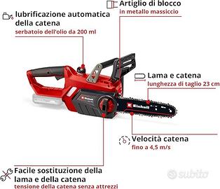 Einhell motosega a batteria GE-LC 18/25 Li-Solo Power X-Change (ioni di litio, 18 V, barra/catena di qualità OREGON, protezione antirimbalzo, perno di arresto catena, senza batteria e caricabatteria).