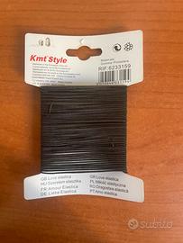 Vendo rotolo di nastro elastico nero Kmt Style da 6 metri, larghezza 1 mm, nuovo e mai utilizzato, ideale per cucito, sartoria, riparazioni, fai-da-te creativo, mascherine, abbigliamento, accessori e lavori artigianali.