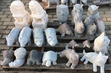 Sono in granito naturale autentico, di colore grigio chiaro, NON sono di cemento, graniglia o polvere di marmo, non soffrono il gelo, ideale per esterni.