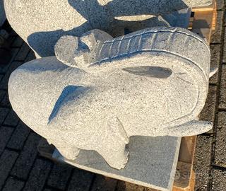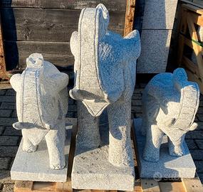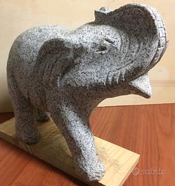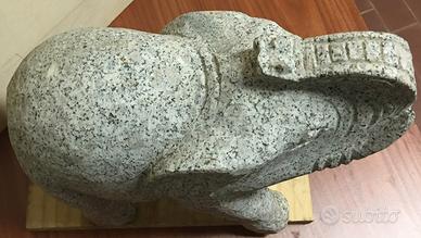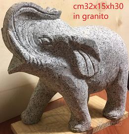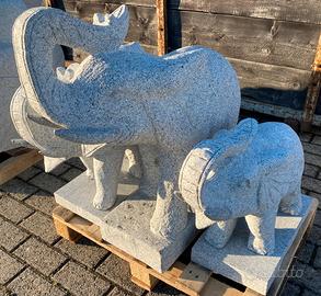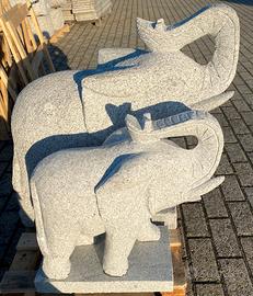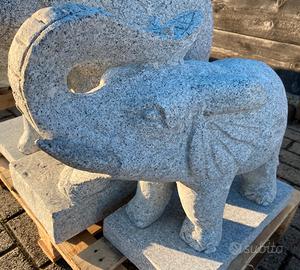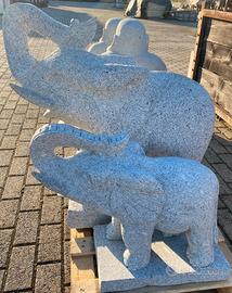 Statua di elefante scolpito a mano da un blocco di granito, ideale per il giardino o sui pilastri.