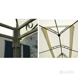 Vendo gazebo da giardino 3x2 metri, modello Greenwood Illinois GAZ363, con struttura in ferro verniciato grigio antracite e copertura in tessuto poliestere ecrù.