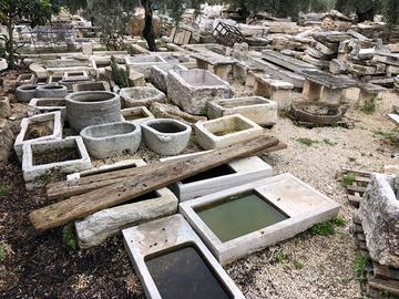 Elementi d'arredo in pietra naturale lavorati adatti per arredo interno ed esterno.