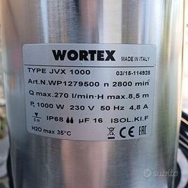 Elettropompa a immersione INOX WORTEX JVX 1000 con girante arretrata, adatta alla movimentazione di liquidi carichi, anche con sostanze solide in sospensione, sollevamento d’acqua per travaso o irrigazione, svuotamento di vasche e piscine di acque chiare e cariche, torbide e melmose.