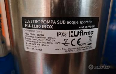 Vendesi elettropompa ad immersione per acque sporche completamente in acciaio inox, nuova utilizzata solo una volta per prova, nella seconda foto troverete tutte le caratteristiche.