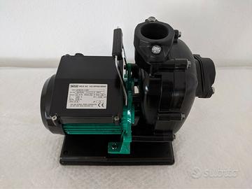 Elettropompa professionale Wilo Drain LP 40/10 per acque reflue, autoaspirante, per montaggio all'asciutto trasportabile o stazionario, per il pompaggio di acqua pulita o leggermente sporcata e acqua marina. Sistema idraulico con raccordo di aspirazione orizzontale e raccordo di mandata verticale con attacco filettato. Come girante viene utilizzata una girante aperta arretrata. Sistema idraulico in materiale sintetico, girante in ottone. È azionato da un motore normalizzato in versione a corrente alternata con corpo motore in alluminio. Il cavo di collegamento deve essere installato a cura del committente. Sistema idraulico e motore hanno un albero comune. Il montaggio stabile è garantito da un basamento a bassa vibrazione.