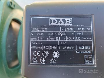 Elettropompa Centrifuga Autoadescante per Abitazione Agricoltura è Giardino DAB JETINOX 102M HP1 1. Pompa perfettamente funzionante leggermente rumorosa poiché con JET autoadescante.