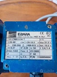 elettropompa trifase marca EBARA 100% italiana hp 0,50 prevalenza 21,5 metri pompaggio 90 litri/minuto come nuova causa inutilizzo (perché trifase) vendo