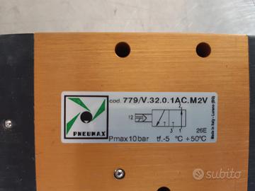 Elettrovalvola di chiusura PNEUMAX 3/2 G3/8. Codice costruttore 779/V.32.0.1AC.M2V. Ritiro a carico dell’acquirente, fisicamente o con spedizione.