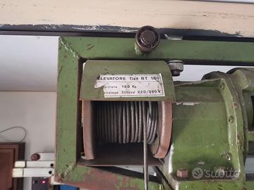 Vendo per non utilizzo verricello/argano per edilizia e non, alimentazione 230V funzionante completo di ogni sua parte. Da installazione a bandiera oppure su guida scorrevole. Portata 180kg. Dotato di selettore per alzare od abbassare la fune.