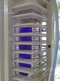 L'elimina insetti elettrico funziona perfettamente, l'insetto attirato da una lampada blu appoggiandosi alla griglia elettrificata che lo fulmina, la griglia è protetta da griglie in plastica. Il predetto elimina insetti deve essere messo in posizioni lontano da bambini......Per eventuali info usare l'apposito spazio del sito. Grazie