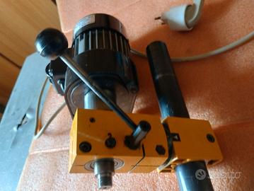 Vendo supporto verticale per fresare e forare Emco completo di colonna usato in buone condizioni con alcune tracce d'uso e del tempo ma funzionante. Il numero di giri del fuso operatore è 380/700/1600 giri/min. Nasello del fuso filettatura 14x1 L'oggetto pesa 6,5 kg