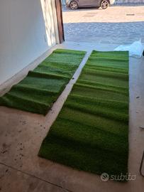 Vendo due tappeti di erba sintetica ,avanzati da rifacimento giardino, di ottima qualità. Altezza manto 4cm Larghezza 95 Lunghezza uno 2,5m e l'altro 3,1m La base dei tappeti è drenante e il manto sintetico è veramente realistico con presenza di filamenti color paglia come si vede da foto.