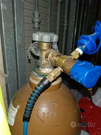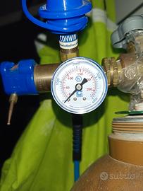 Erogatore elio con molla per gonfiaggio continuo e veloce. Struttura in metallo, tubo flessibile, montaggio rapido. Ideale per professionisti e decoratori con alti volumi di lavoro