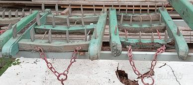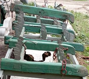 Vendo n.4 antichi erpici per buoi da collezione, con struttura in legno e denti in ferro. Hanno dimensioni e numero di denti che si diversificano uno dall’altro. Presentano segni di usura causati dal tempo, ma sono in ottime condizioni. Il prezzo è di 120€ per quello più grosso, 110€ per i due intermedi e 100€ per il più piccolo. Vendo sia in blocco che separati. Nel caso di acquisto in blocco di tutti e quattro gli erpici, il prezzo è di 400€. No spedizione, ma solo ritiro di persona.