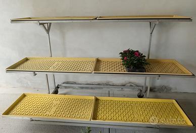 Espositore per piante e fiori con rotelle bloccabili e vasche per raccogliere l acqua. Ripiani alti regolabili. Ideale per negozi del settore fiori e giardinaggio. Disponibili n.2 espositori completi di bulloneria e vasche prezzo cad 350€
