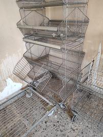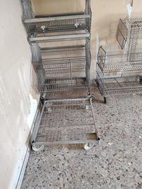 Come da foto vendo in blocco vari espositori in ferro sovrapponibili con ruote usati.