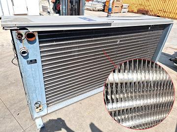 evaporatore bassa temperatura da 30kw usato, si tratta di uno scambiatore ventilato per cella freezer di grandi dimensioni, 300/430m³ o abbattitori di temperatura. di marca GDF dispone di 6 ventilatori Ø60cm e un passo alette di 9mm.