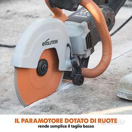 Sega per calcestruzzo elettrica da 255mm Evolution R255DCT con disco diamantato premium UPC: 00849713087300 Perfetto per lavori leggeri e utenti fai-da-te esperti – ottimo equilibrio tra potenza, profondità e facilità d’uso. Profondità di taglio massima di 102mm – consente di tagliare mattoni in un solo passaggio, ideale per ampliamenti domestici o muri da giardino. Potente motore da 2000W – tagli rapidi e costanti su cemento, pietra, mattoni e metallo. Design elettrico con cavo – potenza e affidabilità senza la manutenzione o le emissioni degli utensili a benzina. Disco diamantato premium – con il 35% in più di diamante; taglia più velocemente e dura più a lungo