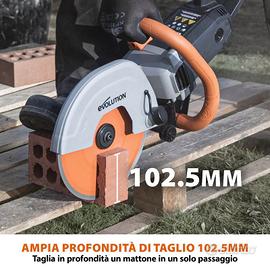 Profondità di taglio massima di 102mm – consente di tagliare mattoni in un solo passaggio, ideale per ampliamenti domestici o muri da giardino.