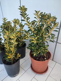 L'euonymus japonicus "aurea" pianta sempreverde caratterizzata da foglie variegate di verde e oro,utilizzata per bordure e siepi. Sì può piantare sia in vaso che in terra. Apparato radicale ben sviluppato. Prezzo cadauno €13