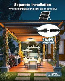 【4000LM Super Luminoso & 3 Temperature di colore】La nostra lampada da soffitto solare da esterno è dotata di 228 LED perle ad alta potenza, fino a 4000 lumen, che è più luminosa delle normali lampade solari esterne. Con 3 temperature di colore 2700 K+4500 K+6500 K, che tu abbia bisogno di una luce bianca calda e morbida per creare un'atmosfera calda o di una luce bianca fredda e brillante per migliorare la sicurezza, questa lampada solare può soddisfare le tue esigenze