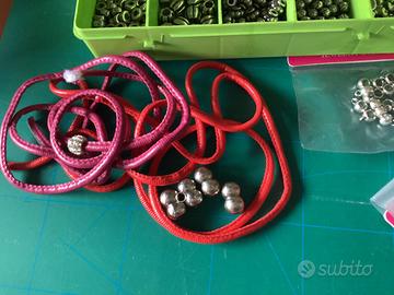 Set nuovo, vario, per fare bigiotteria, bracciali con cordino filanca e similpelle, con calamite a pallina come nella foto.