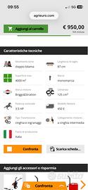 vendo motofalciatrice acquistata qualche anno fa e mai utilizzata. In vendita a 950 € vendo a 790. Eurosystems M210 - Motofalciatrice bilama - B&S 450E Movimento lame doppio bilama, Larghezza di taglio 87 cm, Superficie max 4000 m², Marce monomarcia, Marca motore Briggs&Stratton, Cilindrata 125 cm³, Potenza nominale 3.5 HP, Modello Motore 450 E, Tipo Trasmissione cinghia e ingranaggi, Collegamento motore/lama a cinghia intermedia,