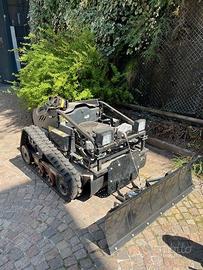 Macchina professionale tagliaerba / trincia radiocomandata ibrida per la gestione di aree verdi problematiche, in luoghi pericolosi difficilmente accessibili, ideale anche per rovi e sterpaglie. Motorizzata VANGUARD 16HP bicilindrico con lubrificazione forzata , piatto di taglio da 80 cm in acciaio inox da 3 mm, lama dotata di 4 coltelli flottanti su due livelli, batterie AGM, cingoli ad alta presa, è in grado di lavorare fino a pendenze di 50° o al 120%. La macchina è in buono stato, ha 75 ore. E' una ex Demo acquistata direttamente dalla Marina System nel 2021 e viene venduta da privato (per inutilizzo) al prezzo in annuncio. Compreso c'è un kit neve artigianale con lama orientabile manualmente e sali scendi regolabile con radiocomando come da foto, due cingoli di scorta nuovi, il suo manuale uso e manutenzione e una batteria aggiuntiva del radiocomando. Il tutto visto e piaciuto nello stato in cui si trova.