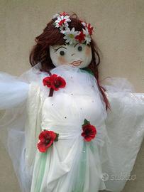 Fantoccio allegro e festoso, creato artigianalmente molto curato nei particolari. Fantoccio di pezza, manichino montato su canne di bambù incrociate. Per addobbi, sagre paesane e feste campestri; arredamento negozi, ambienti esterni (coperti), wedding, matrimoni. Altezza 180 larghezza150 prezzo 40€