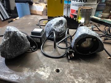Vendo 3 faretti da esterno con rivestimento effetto pietra, ideali per giardino, vialetto, cortile, aiuole o illuminazione decorativa.