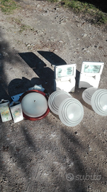 Faretti da giardino in ceramica con neon e plafoniere in vetro.